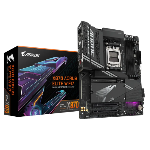 The GIGABYTE X870 AORUS ELITE WIFI7 is a high-performance ATX motherboard designed for AMD's latest Ryzen 9000, 8000, and 7000 series processors, utilizing the AM5 socket and the cutting-edge X870 chipset. Built to support next-gen computing, it features a robust 16+2+2 phase digital VRM power design, ensuring stable and efficient power delivery even under heavy workloads. Memory support is equally impressive, with four DDR5 DIMM slots accommodating up to 256GB of ultra-fast RAM, including AMD EXPO modules for optimized performance.
