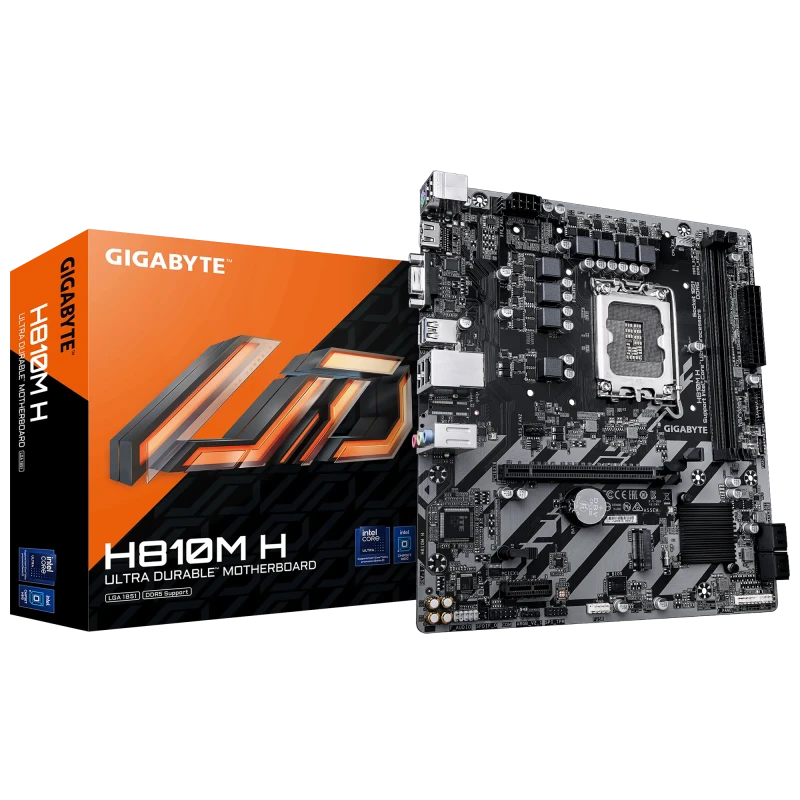 The Gigabyte H810M H LGA1851 DDR5 Intel Motherboard is a compact yet powerful platform designed to support the latest Intel Core Ultra processors using the LGA1851 socket. Built on the Intel H810 chipset, this micro-ATX board offers a solid foundation for mainstream computing, balancing performance, efficiency, and affordability. It supports dual-channel DDR5 memory with two DIMM slots, allowing up to 128GB of high-speed RAM, ideal for multitasking and demanding applications.