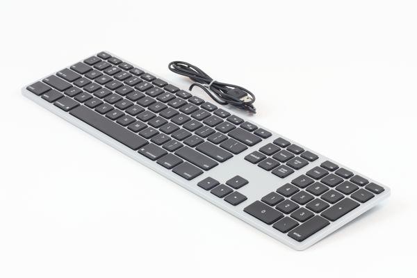 The Matias Wired Keyboard for Mac is for people who miss Apple’s wired USB keyboard. Many people still like the reliability of a traditional USB 2.0 connection with a two port USB 2.0 hub and numeric keypad. This keyboard by Matias has all the special Mac functionality you expect on the function keys. The keyboard has one special function that improves upon the original Apple keyboard … there is a volume control dial on the top edge of the keyboard that gives you more precision in controlling volume than using the keys; however, if you are a traditionalist, you can still control volume with keys on the Matias keyboard, just like the Apple one. This model has a plastic keyframe, so is a budget version of our higher end aluminum model.